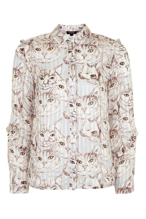 Topshop Cat Print Ruffle Shirt, $80, available at Topshop.