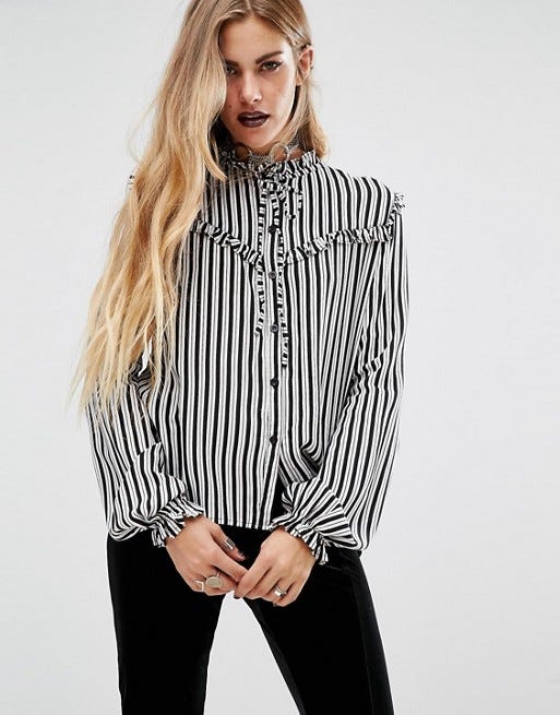 Motel Halloween Prairie Ruffle Shirt In Stripe, $49, available at ASOS.